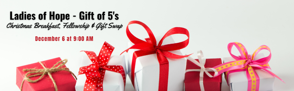 We are excited for another year of the Gift of 5's Christmas Breakfast! The event includes breakfast, fellowship, and a crazy fun gift swap.